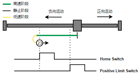 homePrm.mode = 3;                     // 正向运动,不考虑限位,Home开关左侧边沿后的左侧第一个Index为零点