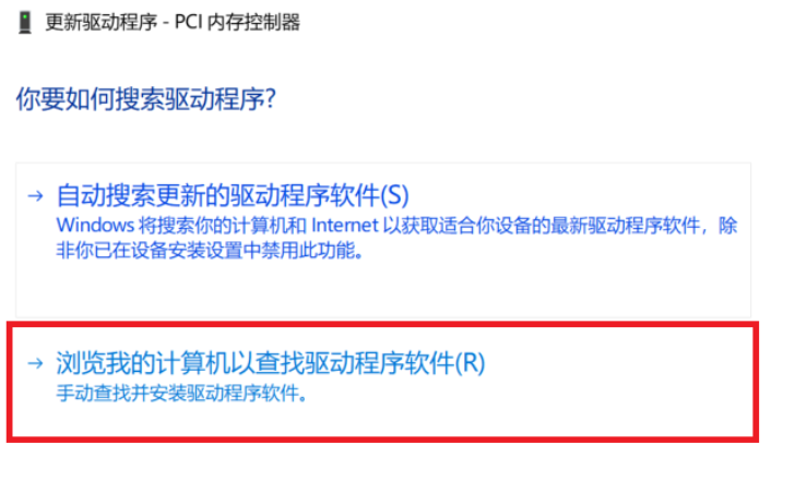 3. 选择“浏览计算机以查找驱动程序软件(R)”。界面如下图所示。