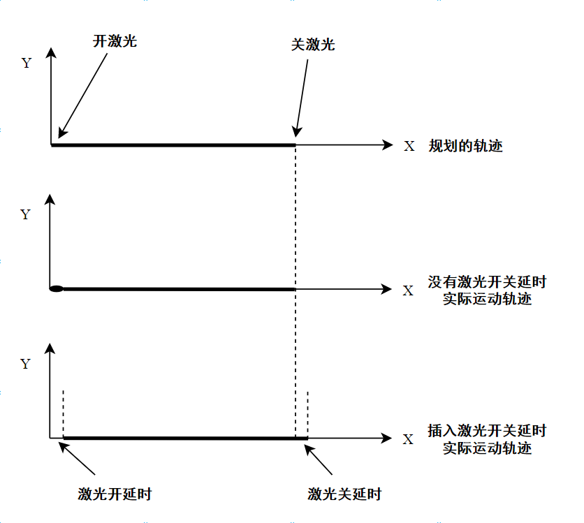 用户设置了激光开关的延时之后,一旦有激光开关的动作,控制器都会自动插入延时。该延时时间只和激光开关有关。