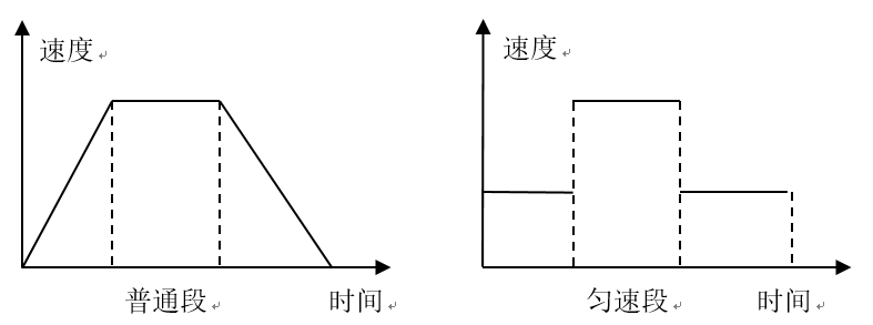 2. 标识模式:执行到等待条件指令时,插补运动正常规划,并且继续执行下一段插补运动,在下一段插补运动的同时检查等待条件是否满足。如果满足,则继续往下执行插补运动。如果不满足,则在当前段剩余段长大于减速段位移的情况下继续执行插补运动,在当前段剩余位移小于等于减速度位移的情况下减速停止。如果在减速的过程中条件满足,则重新继续插补运动,如果仍然不满足,在超时后停止插补运动。
