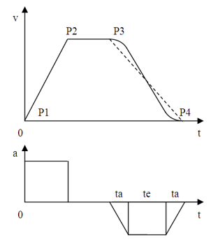 通过GTN_SetTrapPrm指令设定Trap运动的平滑时间,能够得到平滑的速度曲线,从而使加减速过程更加平稳,如图所示。